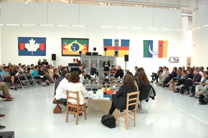 intorno al Tavolo Love Difference di Michelangelo Pistoletto.